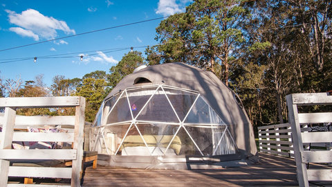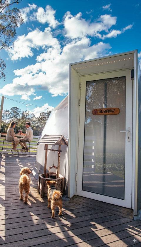 🐶 Experience pet-friendly nature Glamping just 90 minutes from Sydney in our innovative Geodesic Dome, The Burrow.