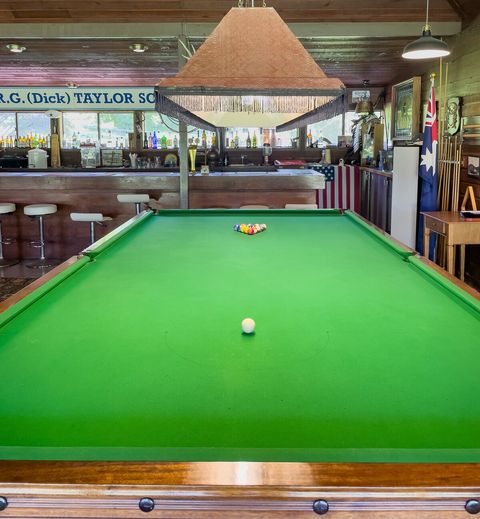 - An outdoor, undercover dining area on the clubhouse balcony.