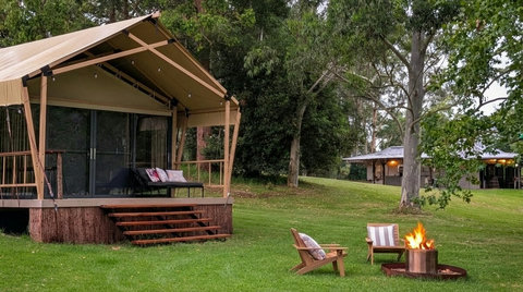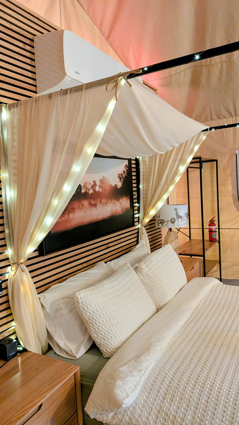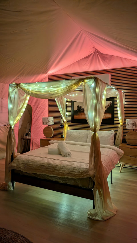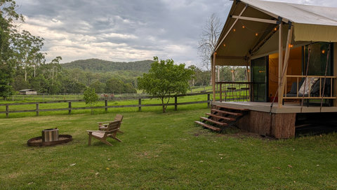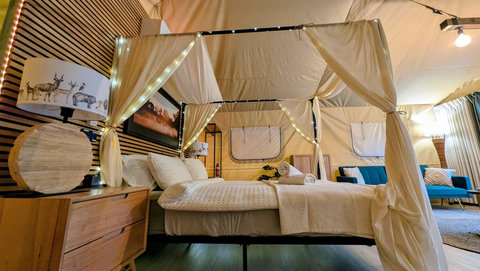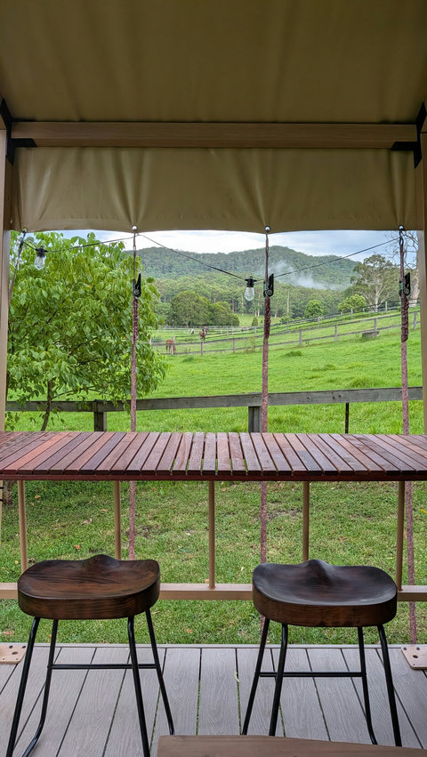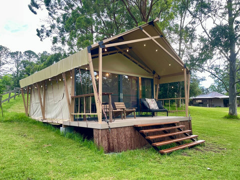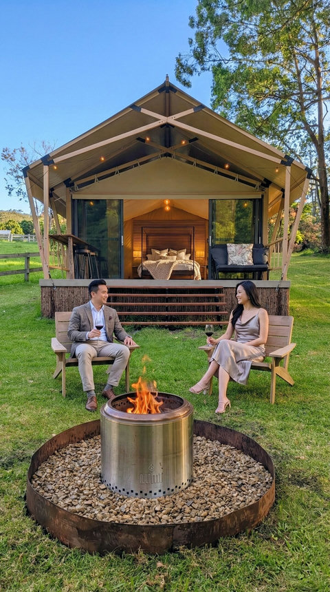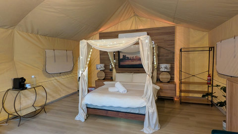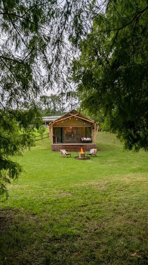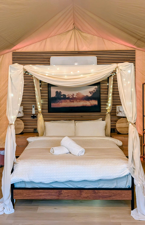 We have replaced our beloved bell tent with a brand new, custom-built Luxury Safari Tent. Enjoy the same 5-star hospitality mentioned in our reviews, now with sliding glass doors, fast Starlink Wifi and best of all, split-system air conditioning for year-round comfort!